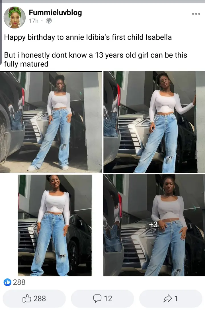 Furthermore, Pictures of Isabella idibia were shared on Facebook by a popular page. Check out the screen capture of the post below;