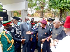 The Governor was accompanied on the visit by the Speaker of the State House of Assembly, Right Honourable Uchenna Okafor, Former National Chairman of the All Progressives Grand Alliance, Senator Victor Umeh, and all the Service Commanders in the state.