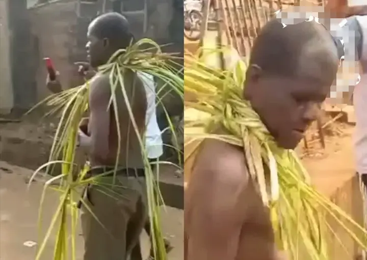 In the viral video which surfaced on the internet, the man was seen with palm fronds around his neck, as the residents of the community sang and chased him out of their land.